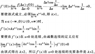 问题其导函数在x=0处连续,则A的取值范围是( )。