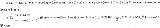 问题 样本(x1,x2.,xn)的平均数为x,样本(y1,y2,…,ym)的平均数为的平均数其中.则n,m的大小关系为( )。