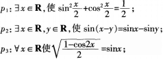 问题 有四个三角函数命题: p4:若sinx=cosy。则x+y=π/2。其中假命题个数为( )。