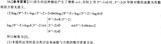 案例:某教师在对基本初等函数进行教学时,给学生出了如下一道练习题: 问题: (1)指出该生解题过程中的错误,分析其错误原因;(6分) (...