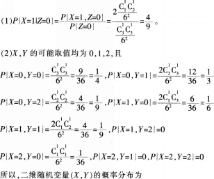 问题 袋中有l个红球、2个黑球与3个白球,现有放回地从袋中取两次,每次取一个球,以X,y,Z分别表示两次取球所取得的红球、黑球与白球的个数。 (1)求 (2)求二维随机变量(X,Y)的概率分布。