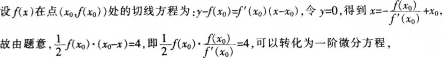 问题 设函数f(x)在定义域,上的导数大于零,若对任意的 处的切线与直线x≈x0及戈轴所围成区域的面积恒为4,且f(0)=2,求f(x)的表达式。