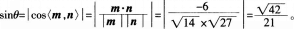 解析 平面π的法向量为n=(3,一l,2); 平面2x+γ+z=0的法向量为nl=(2,1,1),平面x+2y一2=0的法向量为n2=(1,2,一l),则直线l的方向向量为mn=一9—3+6—6,可知直线f与平面π相交。设直线Z与平面π的夹角为θ,则