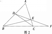 在相似三角形的判定的复习课上.甲乙两位教师分别设计了如下的教学片段: (甲教师) 问题引入:如图1,在△ABC中,D、E分别是AB、AC上的两...