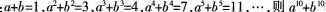 解析 本题考查归纳推理的思想方法。观察各等式的右边,它们分别为l,3,4,7,11,…,发现从第3项开始,每一项就是它的前两项之和,故等式的右边依次为l,3,4,7,11,18,29,47,76,123,…,故a10+b10。=123。