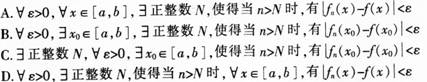 函数列{fn(χ)}与函数,f(χ)是在闭区间[a,b]上有定义,则在[a,b]上{fn(χ)}一致收敛于f(χ)的充要条件是( )。