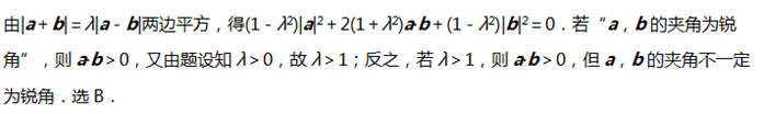 问题 设a,b为非零向量,λ∈R+,满足|a+b|=λ|a-b|,则“λ>1”是“a,b的夹角为锐角”的(  )