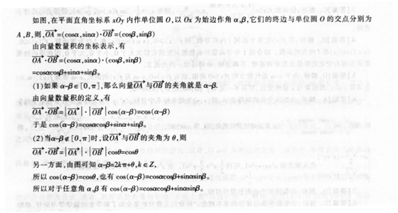 “两角差的余弦公式”是高中数学必修4中的内容。“经历用向量的数量积推出两角差的余弦公式的过程,进一步体会向量方法的作用”请完成“两角差的余弦公式推导过程”...