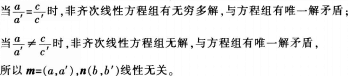 解析 证明:(1)当非齐次线性方程组 有唯一解时,假设向量m=(a,a’),n(6,6’)线性相关,则n=km, (2)当向量m=(a,a’),n(b,b )线性无关时