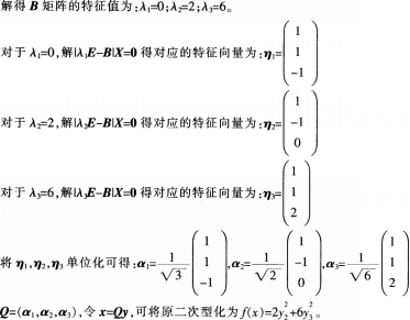 三阶矩阵 为矩阵A的转置,已知r(ATA)=2,且二次型 (1)求a; (2)求二次型对应的二次矩阵,并将二次型化为标准型,写出正交变换过程。