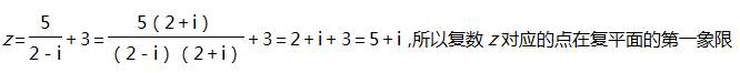 若复数z满足(z-3)(2-i)=5(i为虚数单位),则在复平面内z对应的点在(  )A、第一象限 B、第二象限 C、第三象限 D、第四象限
