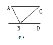 如图5,在△ABC中,∠ABC=90o,∠CBD=40o,AC∥BD,则∠A=__________度。