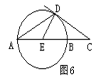 如图6,AB是⊙E的直径,C是直线AB上一点,CD切⊙E于点D,且∠A=25o,则∠C= ______度。