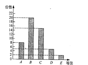 问题 某校学生会在“暑假社会实践”活动中组织学生进行社会调查,并组织评委会对学生写出的调查报告进行了评比.学生会随机抽取了部分评比后的调查报告进行统计,绘制了统计图如下,请根据该图回答下列问题: (1)学生会共抽取了______份调查报告; (2)若等第A为优秀,则优秀率为_____________ ; (3)学生会共收到调查报告1000 份,请估计该校有多少份调查报告的等第为E