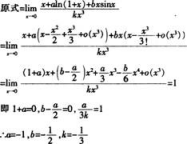 问题 设函数f(χ)=χ+aln(1+χ)+bχsinχ,g(χ)=kχ3,若f(χ)与g(χ)在χ→0是等价无穷小,求a,b,k的值。