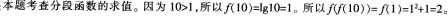 若函数 则f(10))=( )。A、19101 B、2 C、1 D、0
