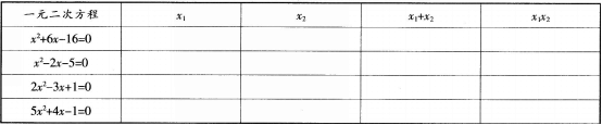 在“一元二次方程根与系数的关系”一课上,某教师设计如下的教学过程: 一、探究规律 先填空,再找规律: 思考:观察表中x1+x2与XlX2的值,...