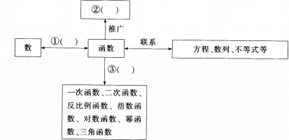 问题 下列框图反映了函数与相关内容之间的关系,请用恰当词语补充完整。