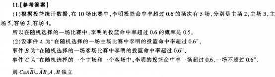(1)从上述比赛中随机选择一场,求李明在该场比赛中投篮命中率超过0.6的概率。