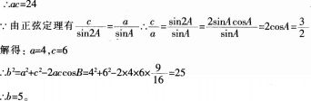 在ABC中,已知A,B,C对应的边分别为a,b,c,且 (1)求cosC和cosB的值: (2)当时,求a,b,c的值。