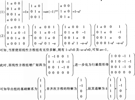 问题(1)求lAl; (2)已知线性方程组AX-b有无穷多解,求a,并求AX=b的通解。