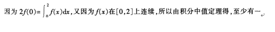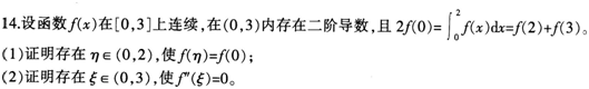 解析 点η∈(0,2),使得即2f(o)=2f(η),所以存在η∈(0,2),使得发f(η) =(0)。 (Ⅱ) 知,至少存在一点。∈(2,3)使得f(η1=f(0)。 因为.厂(x)在[0,2]上连续,在[0,2]上可导,且f(0)f(2),所以由罗尔中值定理知,存在ξ1∈(0,2),有f'(ξ1)=0。 又因为.厂(x)在[2,η1],]上连续,在(2,η1)上可导,且f(2)=f(0)=f(η1),所以由罗尔中值定理知,存在ξ∈(2,η1),有f'(ξ2)=0。 又因为f(x)在[ξ1,ξ2]上二阶可导,且f'(ξ1)='(ξ2)=0,所以由罗尔中值定理,至少有一点∈(ξ1,ξ2)c(0,3),使得f”(ξ) =0。