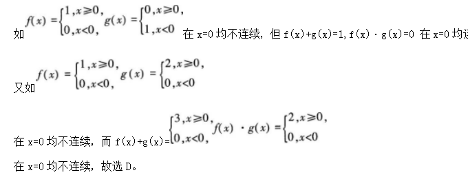 设f(x),g(x)在x=x0处均不连续,则在x=x0处( )A.f(x)+g(x)f(x)·g(X)均不连续 B.f(x)+g(x)不连续,f(x...