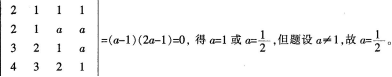 问题 设行向量组(2,1,1,1),(2,1,a,a),(3,2,1,a),(4,3,2,1)线性相关,且a≠1,求a。