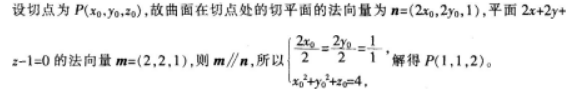 问题 曲面z=4-x2-y2上点P处的切平面平行于平面2x+2y+z-1=0,则点P的坐标是()。