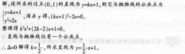 案例:某教师在进行圆锥曲线的教学时,给学生出了如下一道练习题: 求过点(0,1)的直线,使它与抛物线y2=2x仅有一个公共点。 某学生的解答过程如...