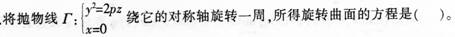 选项 A、χ2+z2=2py B、χ2+y2=2pz C、y2+z2=2pχ D、χ2-y2=2pz