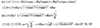 问题 设质点作匀速圆周运动,其轨迹为r (t)=(χ(t),y(t)),其中χ(t)=Rcosωt,y(t)=Rsinωt,速度和加速度分别定义为v(t)=(χ′(t),y′(t)),和a(t)=(χ"(t),y" (t))。 (1)求v(t)和a(t);(4分) (3)若一飞行器绕地球作匀速圆周运动且只受重力作用(高度可忽略不计),求其飞行速度的大小(设地球半径为6400千米,重力加速度为g=10米/秒2)。(3分)