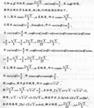 解析 所以会与老师期望得到的结果不同。 学生二利用两角和正弦公式,后化为解一元二次方程得出两个结果,后也是没有验证结果的正确性和学生一犯了一样的错误。整体来说学生对三角函数公式掌握的比较牢固,运用的也比较熟练,只是在熟练的基础之上还不能更好的内化数学思想,即验证结果的成立与分类讨论的应用。 (2)首先请全班同学同桌两人为一组讨论板演同学的答案是否正确,若对,说出解题思路以及解题亮点,若不对应该如何纠正。时间为两分钟,在此期间教师到学生中间巡场,走进学生,找到学生的疑惑点。然后教师请学生代表来分析此题,并说出正确结果。因为学生对此知识点掌握相对薄弱,我会在此处着重强调在得到答案之后验证的重要性,让学生从题目中总结所学到的方法。