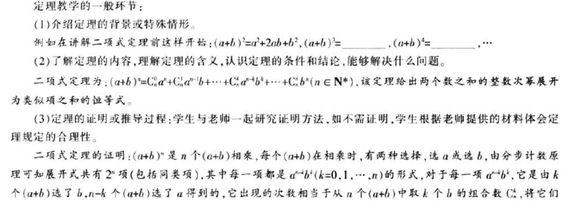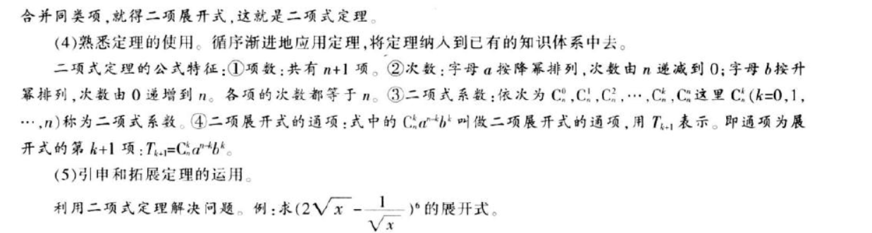 问题 以“二项式定理”的教学为例,阐述数学定理教学的基本环节。