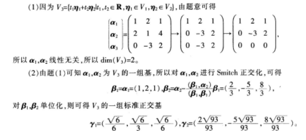 (1)求子空间V3的维数; (2)求子空间V3的一组标准正交基。