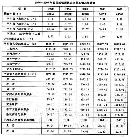 根据以下资料根据表格材料,下列说法错误的是( )。A.1990-2009年二十年间,我国城镇居民食品消费支出所占比例有所下降,说明...