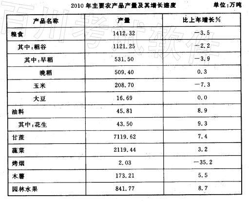 根据以下资料2010年,广西壮族自治区全年粮食种植面积3061.06千公顷,比上年减少6. 45千公顷。油料种植面积192.90千公顷,增加11.75...