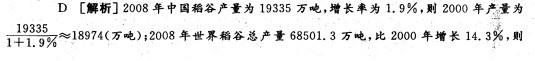 根据以下资料2008年世界稻谷总产量68501.3万吨,比2000年增长14.3%小麦总产量68994.6万吨,比2000年增长17.8%;玉米总产量...
