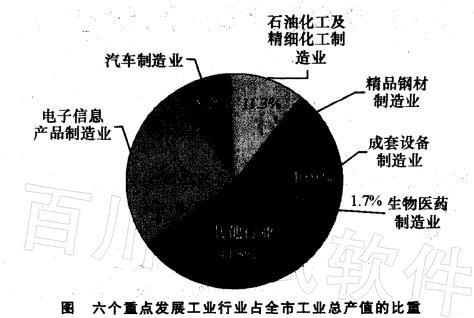 据下列关于某年G市六个重点发展工业行业的统计图表,回答14—15题。某年,G市电子信息产品制造业、汽车制造业、石油化工及精细化工制造业、精品钢材制造业、成...