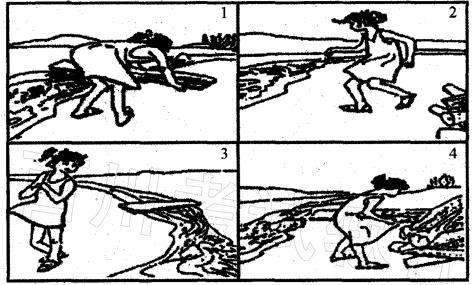 解析 先是图2中的“过河无挢”,,然后是困4中的“寻找未板”,接着是困1中的“搭木板作桥”,最后是图3中的“到达对岸”,故选B。