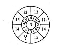 解析 图形数阵。最外围的数字=相邻的两个中间层的数字之和+最里层的数字3。即 14 = 7+4+3,15 = 5 + 7 + 3,12 = 5 + 4 + 3,13 = 4+6 + 3,11 = 6 + 2 + 3,14=9 + 2 + 3, 15 = 3 + 9 + 3,故? =4 + 3+3 = 10。本题选 B。