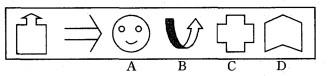 解析 第一组图中,两个图形都由两部分组成,即黑色与白色部分,且方向一致; 由此可推出第二组图形,应为只有个部分,且方向向上,只有D项符合。故本题答案为D。