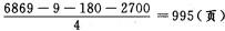 解析 1—9页需要用9个数字,10—99页需要用90×2 = 180个数字,100—999页需要用900×3 = 2700个数字,1000以上的页码每页需要用4个数字,那么1000以上的页数为,总的页数为1000 +995-1 = 1994?(页)。正确答案为A。