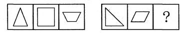 解析 考查直线段的个数。第一组图三个图形的直线段个数分别为3、4、4,第二组图前两个图形直线段的个数为3、4,应该选择含有4条直线段的图形,答案选D。