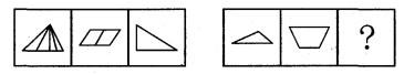 解析 第一组图形中图形的直线段条数分别为6,5,3,依次相差1,2。第二组图形的直线段条数分别为3,4,(),依次相差1,2,故选含6条直线段的图形。