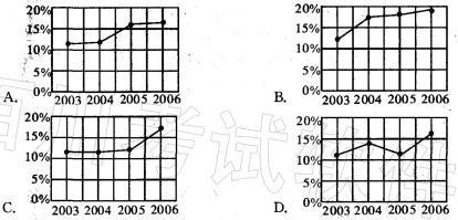 解析 财政支出规模=财政支出/国内生产总值,观察两个图中的数据可以看出,2003—2005年的财政支出规模变化不大,而2006年财政支出的增长较快,生产总值的增长幅度不大,所以2006年的财政支出规模增长较快,只有C项符合。