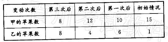 问题 甲、乙二人分16个苹果,分完后,甲将自己所得苹果的1/3给了乙,然后乙又将自己现有苹果数的1/3还给甲;最后甲又将自己现有苹果数的1/3给了乙,这时两人苹果数恰好相等。问:最初甲分得几个苹果?( ) A. 7 B. 10 C. 13 D. 15