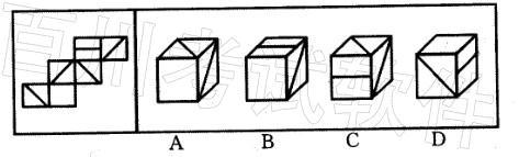 解析 本题属于空间重构类,考查相对和相邻关系,观察图形可知空白面和画横线的一面是正方体相对的两面,由此排除B、D选项。C项上底面应是另一条对角线,排除C选项,所以选择A 选项。