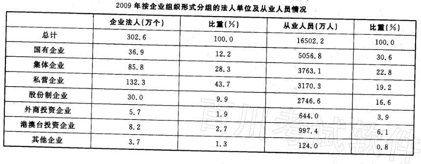 解析 每个国有企业法人单位的从业人员数比每个私营企业的多:5056. 8/36. 9-3170. 3/132. 3≈113(人),本题正确答案为D。