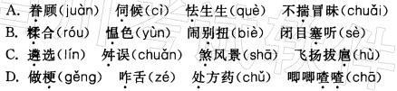 问题 下列词语中,字形与加点字的读音全都正确的一组( )。